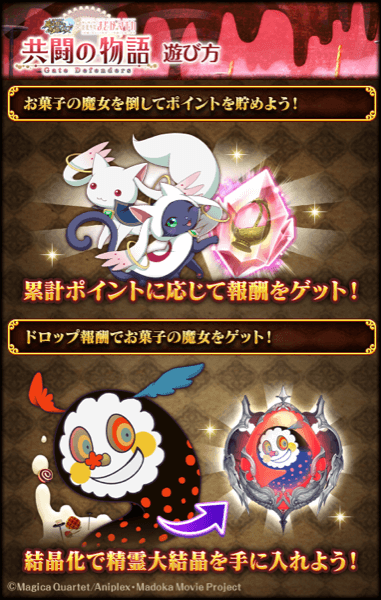 コラボ限定の協力バトルの報酬は「キュゥべえ&ウィズ」の特別タッグカードと「お菓子の魔女」の精霊カードだ。「お菓子の魔女」は精霊大結晶化も可能なので、必ず1枚はGETしておきたいところ。