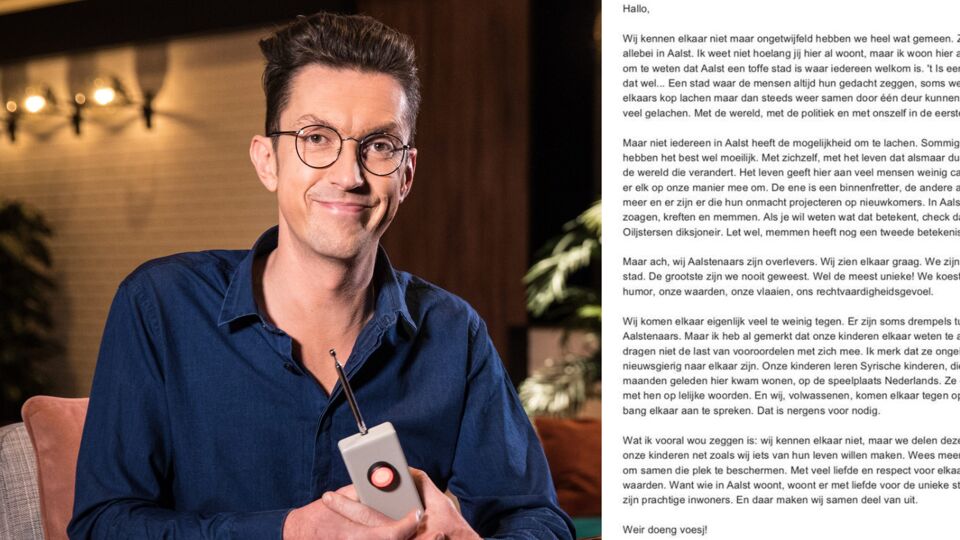 "Ik weet niet hoelang jij hier al woont, maar ik woon hier al lang genoeg om te weten dat Aalst een toffe stad is waar iedereen welkom is", staat er te lezen in de brief van Van Herreweghe. De brief merkt op dat Aalstenaars te weinig proberen om elkaar te leren kennen. "Onze kinderen leren Syrische kinderen op de speelplaats Nederlands. Ze oefenen intens met hen op lelijke woorden. En wij, volwassenen, komen elkaar tegen op straat en zijn bang elkaar aan te spreken. Dat is nergens voor nodig."